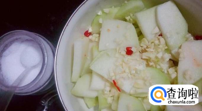 先把大头菜洗干净后去掉皮,然后切成均匀的小块状,把辣椒和大蒜剁碎。