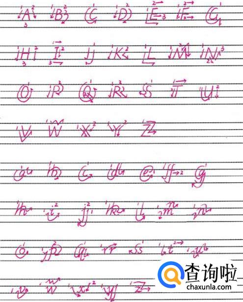 占上中两格的:有26个大写字母和b,d,h,i,k,l,t等7个小写字母。