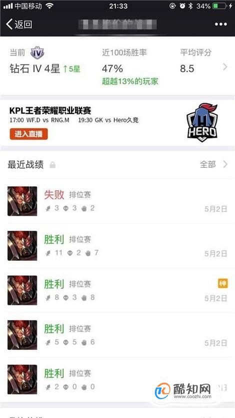 这样操作完成我们就可以查看到王者荣耀的战绩和战报了。