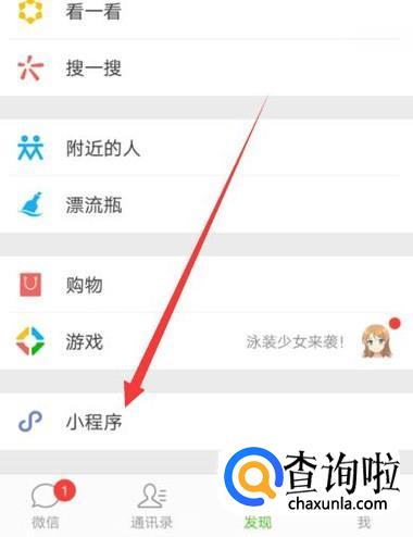 进入之后,在“发现”页面点击小程序,进入下一页面,如图所示。