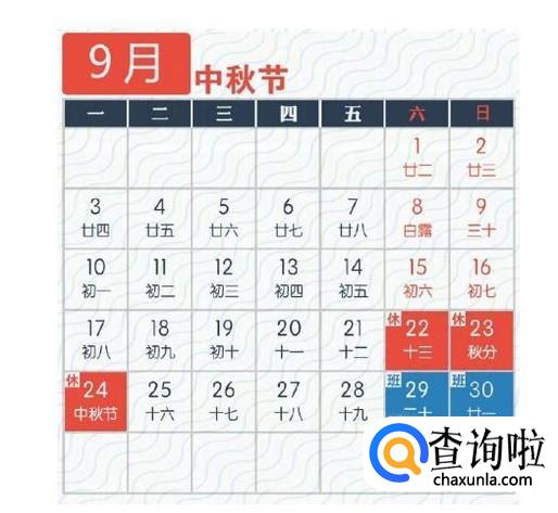 中秋节是9月24日,是国家法定节日,这一天应该休息,因为这天是周一,正好和周六周日连起来,可以从22日到24日连歇三天。