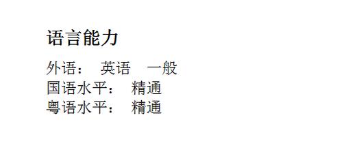 语言能力,你掌握几门语言,达到了什么等级标准。