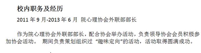 校内职务及经历,在校期间担任的职务,这个表明你在学校的参与度,实践能力等。