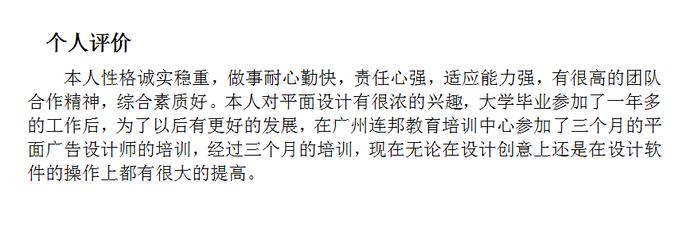 最后就是个人评价了,个人评价是对整个人的综合情况的描述。