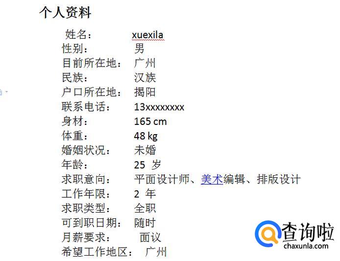个人资料,就大概的介绍一下自己的基本资料。