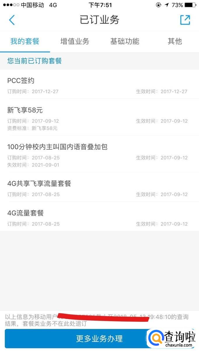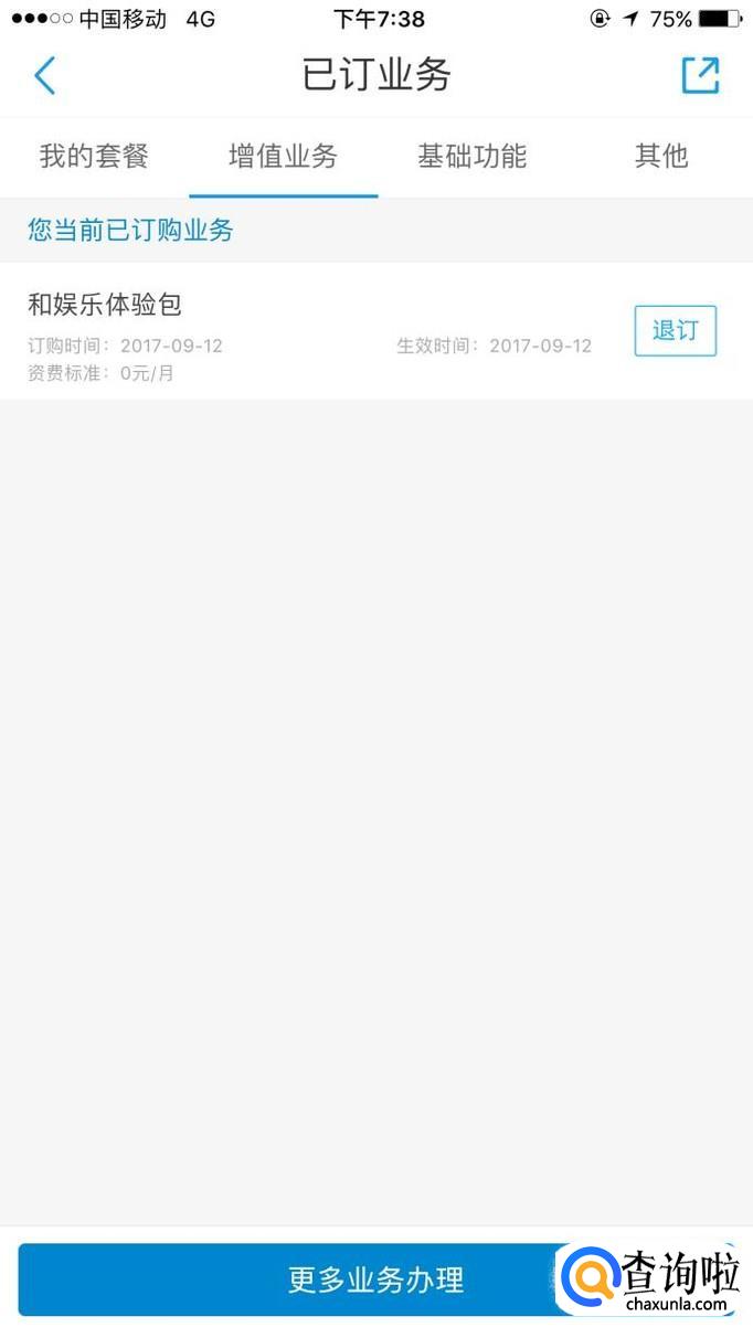 第一排增值业务,可以看到所有能退订的业务。