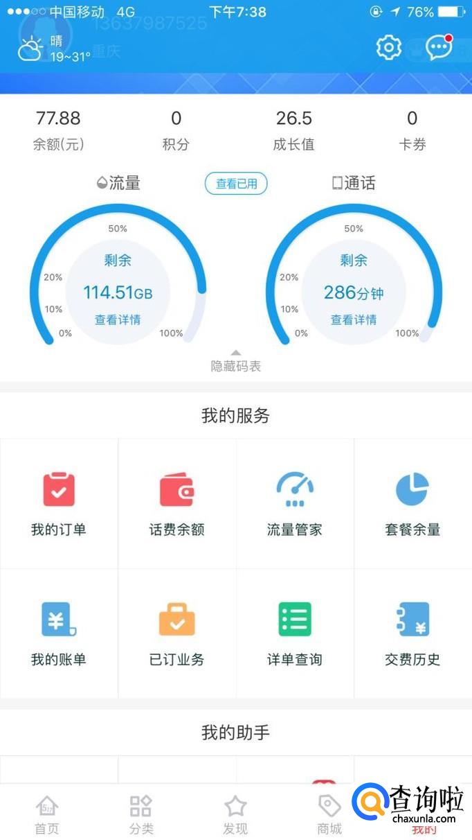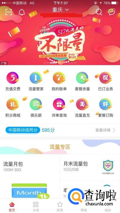 下载一个中国移动app,进入后,右下角‘我的’,