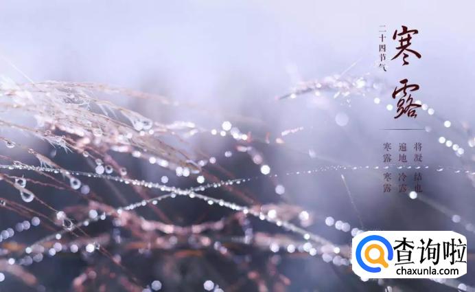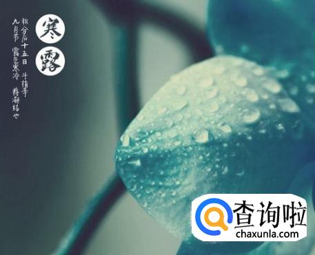 寒露是一个反映气候变化特征的节气,寒露与白露、霜降三个节气都是表示水汽凝结现象,古人过去认为白露就是雾起变露,寒露由雾化凉爽,霜降则是雾变霜。寒露是气候从凉爽到寒冷的过渡。早晨可见露珠寒光四射,如俗语所说的“寒露寒露,遍地冷露”。寒露与白露时相比气温下降了很多,地面上的露水也更冷了,很可能成为冻露,因此称为寒露。上古时代以“斗柄指向法”划分节气,当北斗七星的斗柄指向戊的方位(西北方),为寒露节气。汉至明末的“平气法”划分节气,寒露当日正午用圭表测日影,影长为古尺八尺二寸,相当于今天的2.018米。1645年起沿用至今的“定气法”划分节气,当太阳到达黄经195度为寒露。一般寒露节气是在每年公历10月8日或9日这两天。