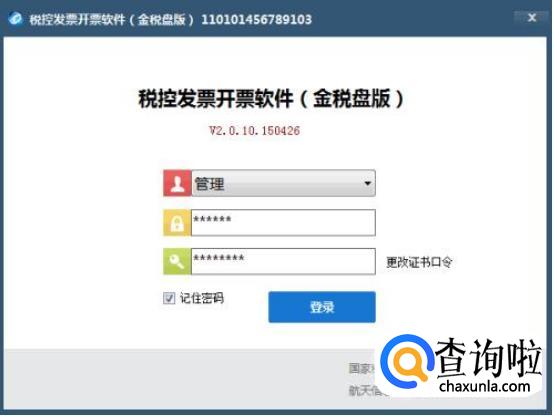 打开金税盘税控发票开票软件,输入管理员密码和口令,确认无误后,点击登录。