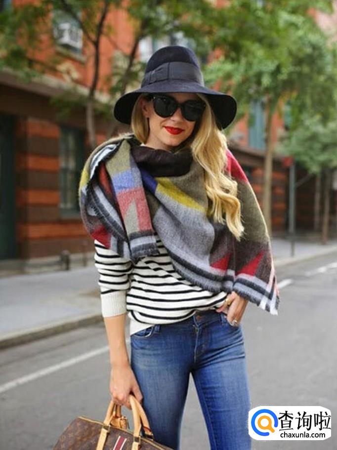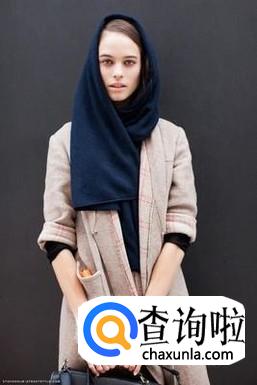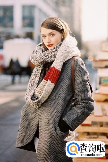 这次就不将围巾围着脖子绕圈了,而是将围巾当头巾使用,这样不仅可以挡风,而且会让人显得温婉可人。