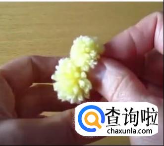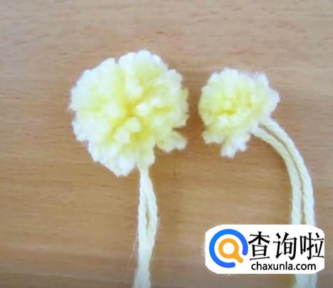 将两个带黑头的长钉对称插入小线团,制作出眼睛。