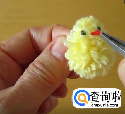 最后将红色的小嘴巴插在小线团上。我们可爱的毛线团小黄鸡就完成啦!是不是很简单呢?赶快来做一做吧!
