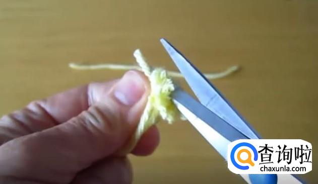 用剪刀,将线圈两端剪开,适当修剪让线头整齐一些,就形成了第一个小线团。第一个线团稍小一点,作为小鸡头部。