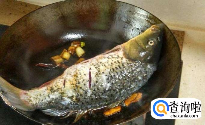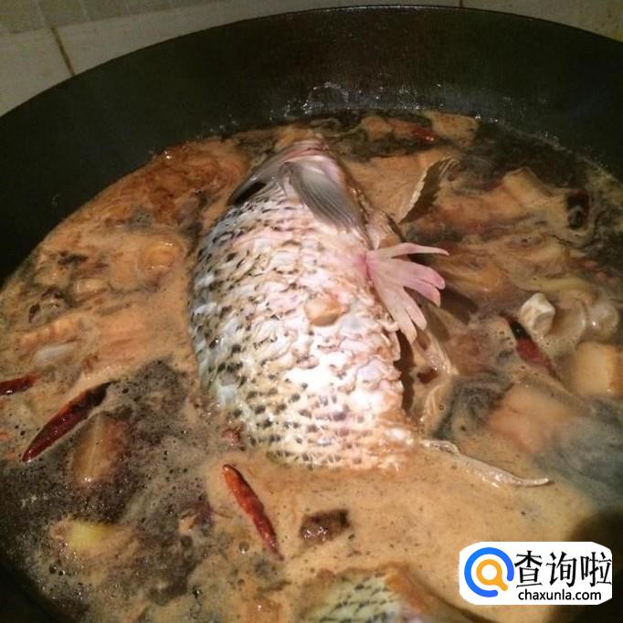 鱼煎的时间不需要太久,正反面煎1分钟就可以了,然后倒入适量开水,开水没过鱼身,大火烧开转为小火炖20分钟。