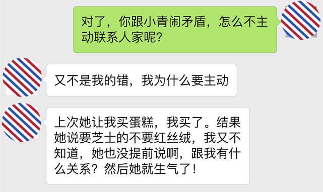 “你知道吗,我们俩吵架,只要我不找他,他一定不会找我。不管到底谁对谁错,他就端着等我主动跟他说话,他难道是个姑娘吗?”