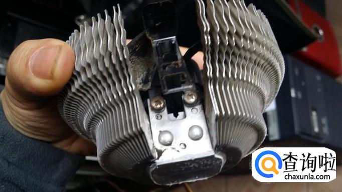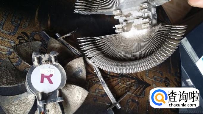 这个散热器的风扇是用螺丝固定在散热片上的,用螺丝刀把螺丝卸下,就可以取下风扇。把风扇和散热器上的灰尘分别清理干净,再安照原样安装起来。