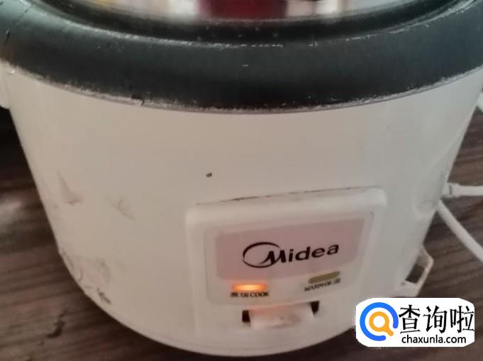 如图所示都放好后,要是陈米的话锅中放几滴植物油,盖上电饭锅盖,插上电源按下煮饭键,这时煮饭指示灯亮,电饭锅开始工作。
