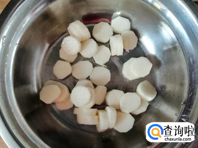 取适量山药,用清水把山药洗净,用刮刀给山药去皮,然后用刀切去两头,把洗净去皮的山药切片待用。