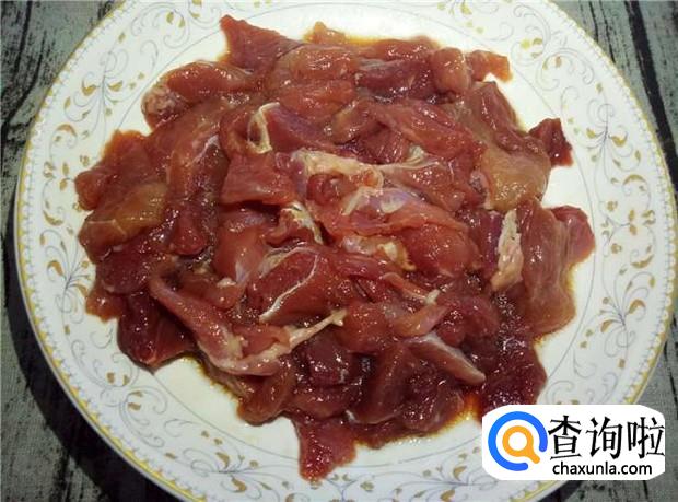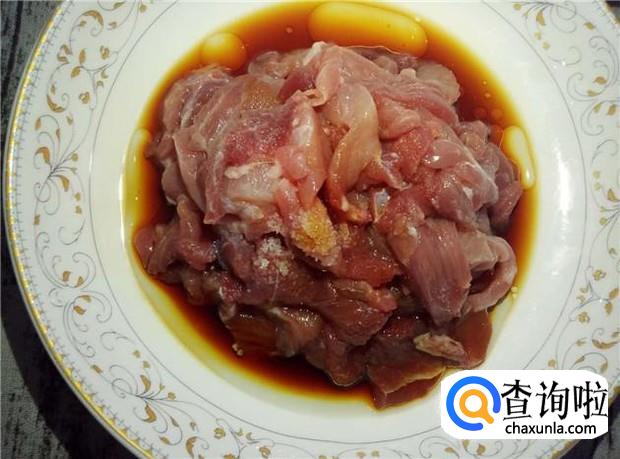 瘦肉清洗干净,加入适量的酱油、花生油、料酒,搅拌均匀,腌制一会。