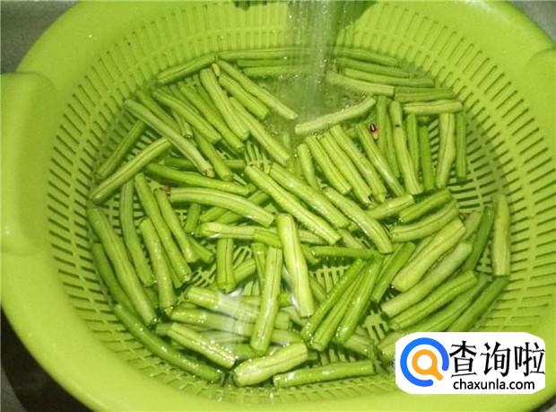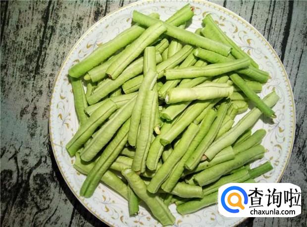 长豆角摘掉两头,然后摘成一小段一小段,大概两厘米长。