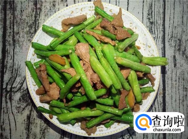 炒熟后,装盆,即可享受美味的长豆角炒肉了。腌过的瘦肉很入味,很好吃哦。
