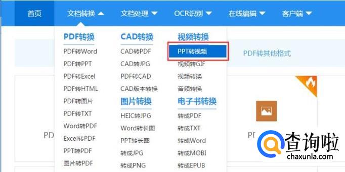 进入在线操作界面后。依次找到“文档转换”“视频转换”“ppt转视频”并点击