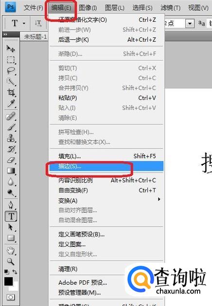 然后点击“编辑”,“描边”。