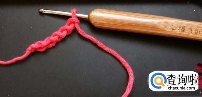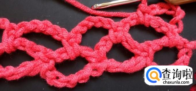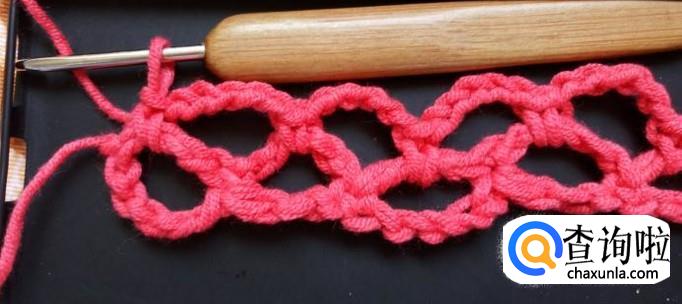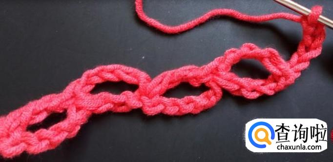 够到自己需要的长度时,开始横着钩渔网针。 起五针辫子针,反过来,从之前的辫子针中插入,钩一个短针。