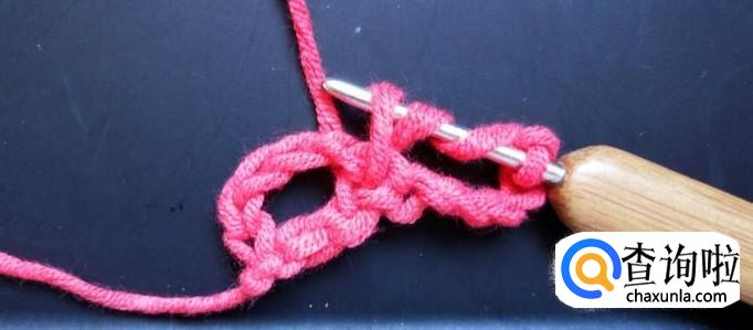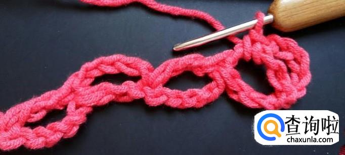 再钩五个辫子针,往前面钩一个短针,重复这个步骤。