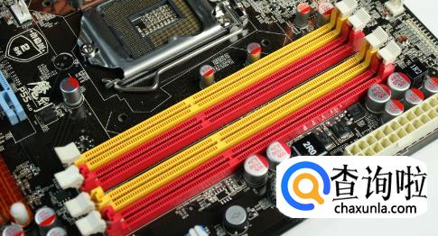 然后是黄色的卡槽,这个卡槽是插显卡的。ISA、PCI、AGP这些标识不同,但是都是用来插显卡的。还有内存卡槽,这儿卡槽是可以插多条兼容内存的。