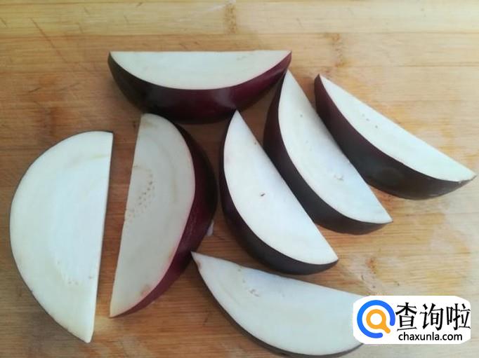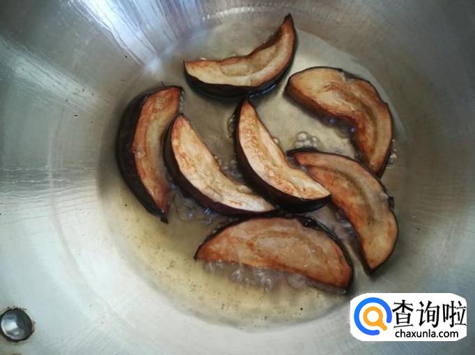 焯锅放入花生油,油三成熟时,把茄块摆入油锅中,调小火慢慢煎熟。