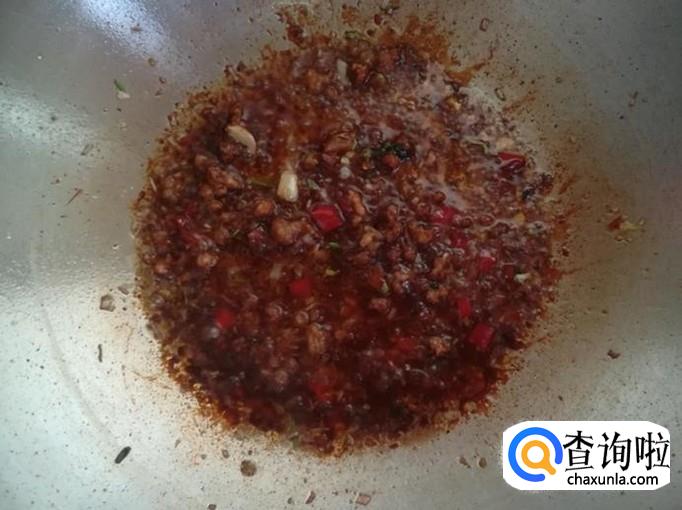 再把调味汁倒入炒锅里,炒拌后做成酱料。