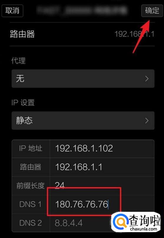 然后把DNS1这里填入如图的地址,填好了点击确定,此刻WiFi就会重新连接了。