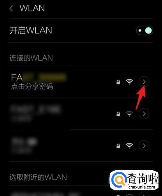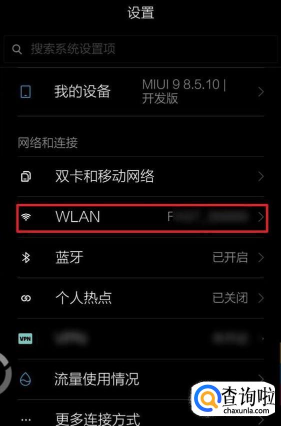 在弹出的设置菜单中,点击WLAN。