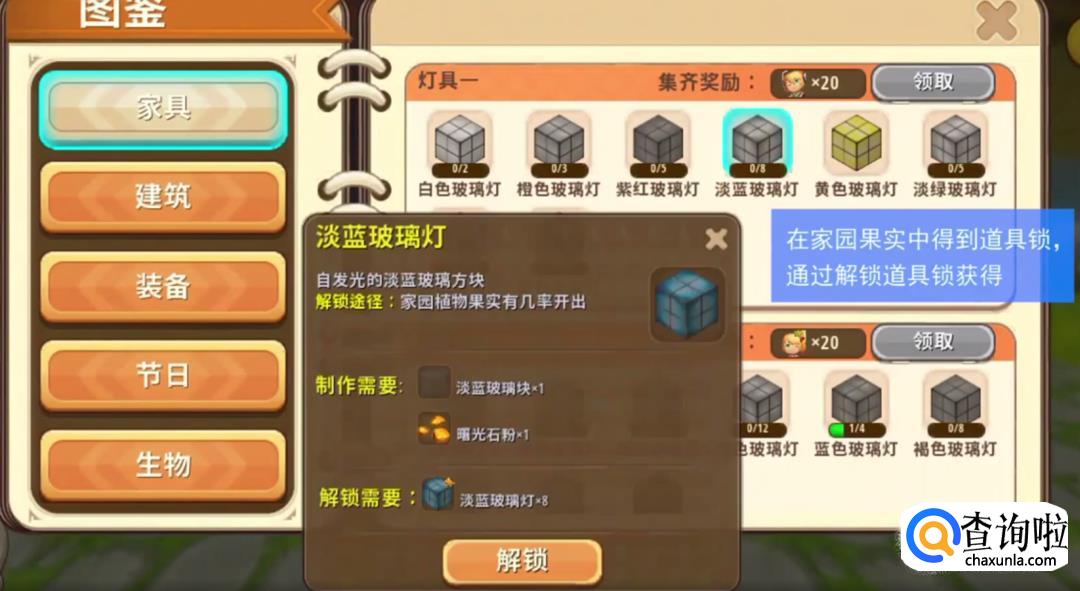 打开图鉴,通过使用解锁道具解锁获得,解锁道具可在家园果实中获得。