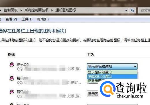 然后选择隐藏图标和通知,如下图所示。
