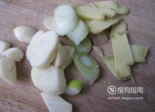 准备配料,将大蒜扒皮切片,老姜切片备用,干小米辣就不用切了,待会儿整个放入就好了。