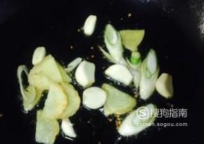 起锅烧油,油热后放入蒜片姜片煸炒,要小火煸炒炒出香味。