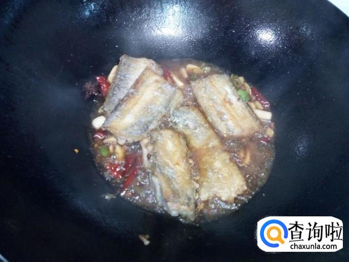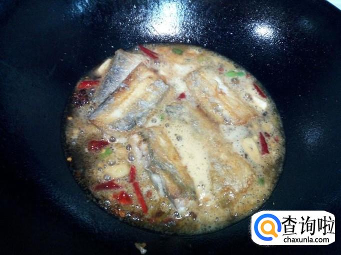 然后放入调和好的料汁,烧开。放入煎塌好的刀鱼。