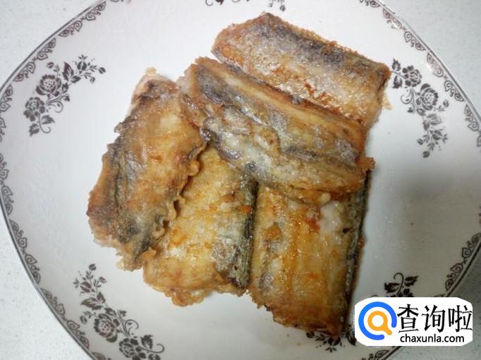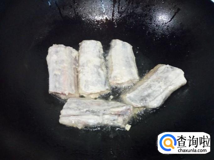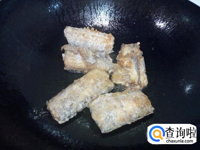 锅内放入加热,油热后放入刀鱼,小火煎塌。