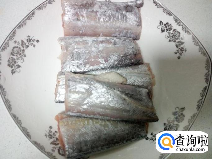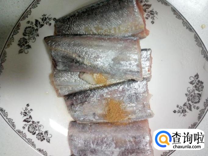 刀鱼收拾清洗干净,控干水分,切成段。放入少许盐,五香粉,料酒,腌制15分钟。