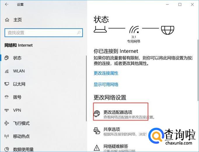 弹出的界面,我们点击更改适配器选项;