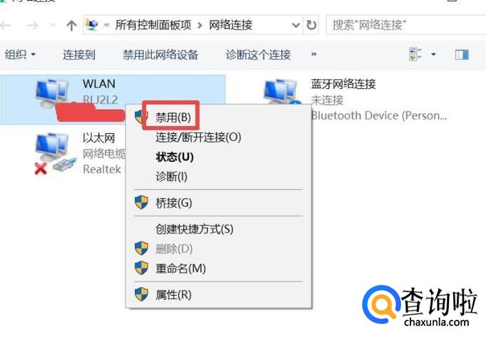 弹出的界面,我们右击连接的网络,选择禁用;