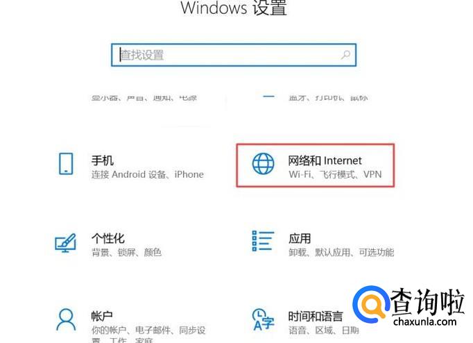 弹出的界面,我们点击网络和Internet;