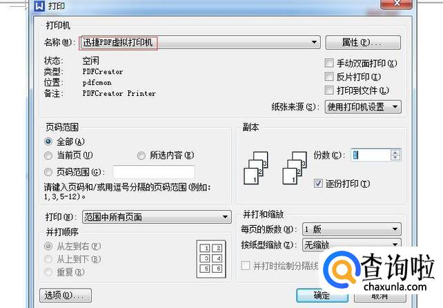 接下来打开需要进行打印的Word文档,然后点击打印按钮,打开打印界面之后,添加迅捷PDF虚拟打印机,然后点击确定选项,即可将Word文档打印成JPEG图片。