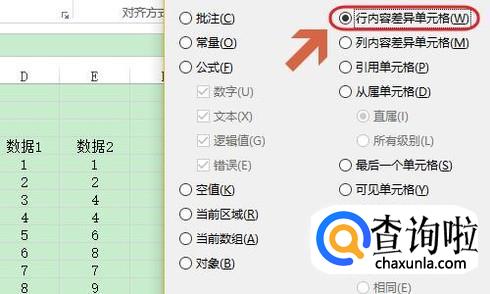 如果是要对比一张Excel表中的内容,我们可以选中其中的所有内容,然后点击“开始”-“查找和选择”-“定位条件”,然后在弹出的对话框勾选“行内容差异单元格”