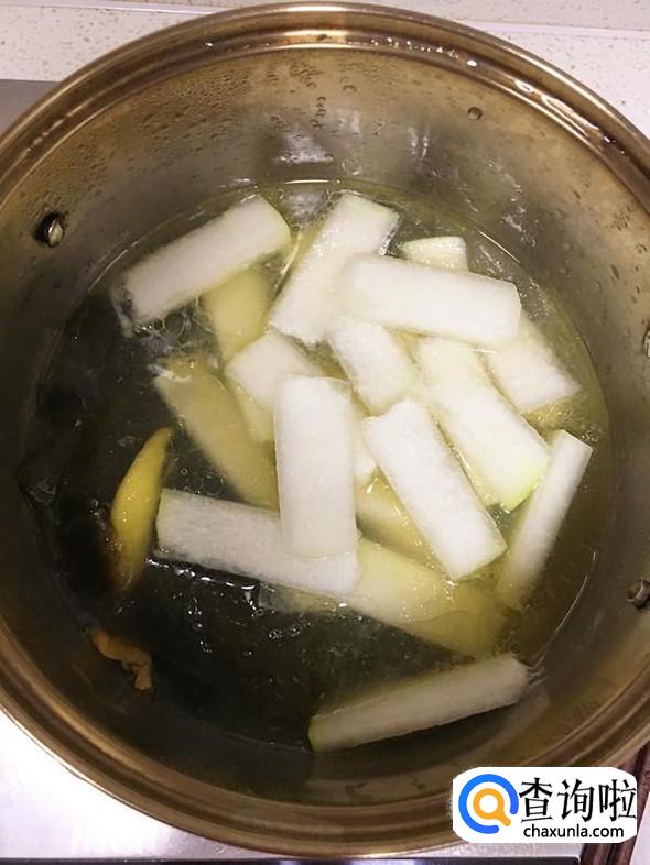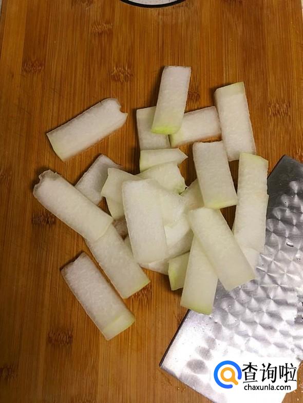冬瓜清洗干净后去皮并切成小块。