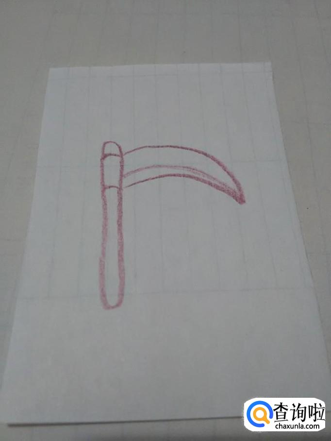 在两条弧线之间再画一条弧线,表示镰刀的刀刃,镰刀就画完了。