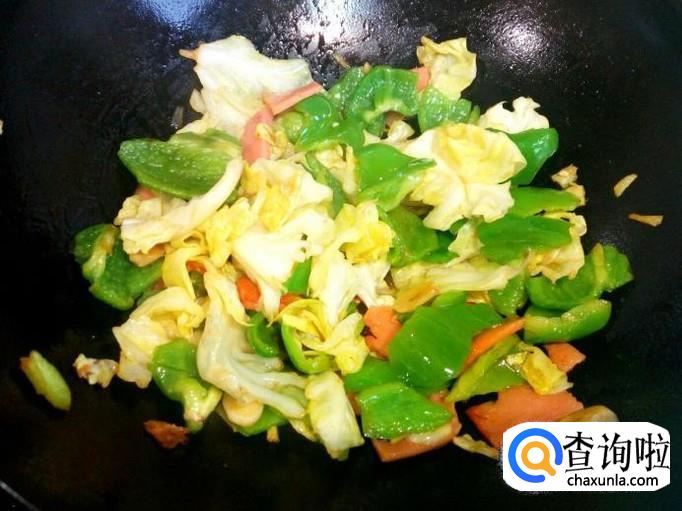 火腿肠 1根(85克),麻辣青椒 2个,包菜 150克。