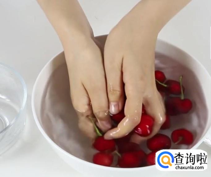 将樱桃用清水清洗几遍,或用水龙水直接冲洗,将表面的脏物先洗干净。